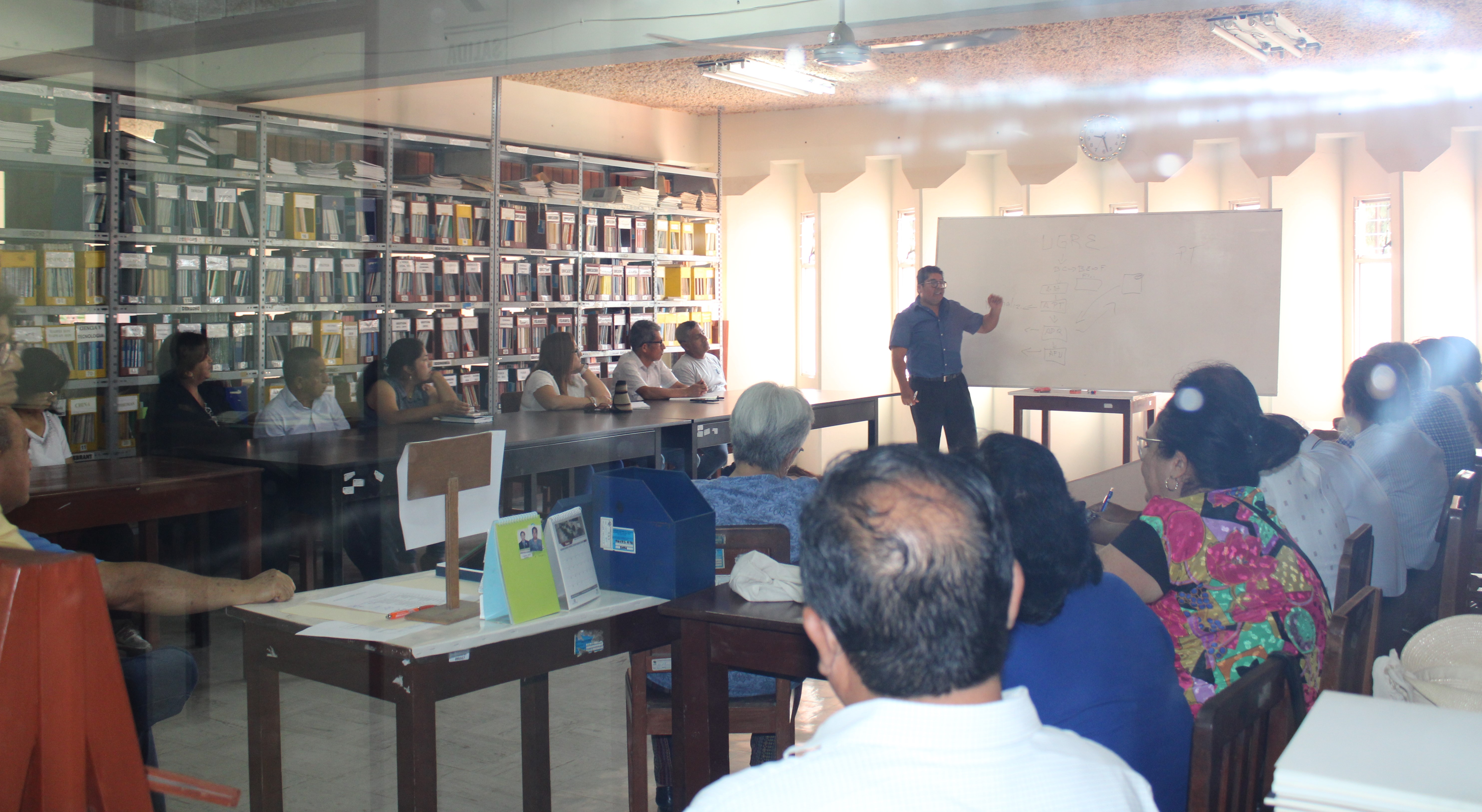 Primera reunión de coordinación, con los directores de biblioteca de Facultad de la UNT, con el jefe de la UGRE que, recientemente ha asumido las funciones, bibliotecólogo Lic. Pablo César Soria Rivas. En la hemeroteca de la Biblioteca Central.